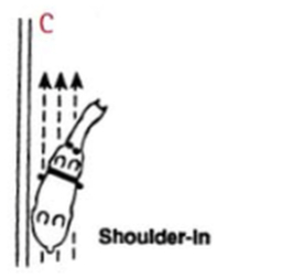 What it is: Horse’s shoulders move slightly inside the track while maintaining bend.